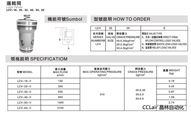 LCV-16, LCV-25, LCV-32, LCV-40, LCV-50, LCV-63,邏輯閥 |