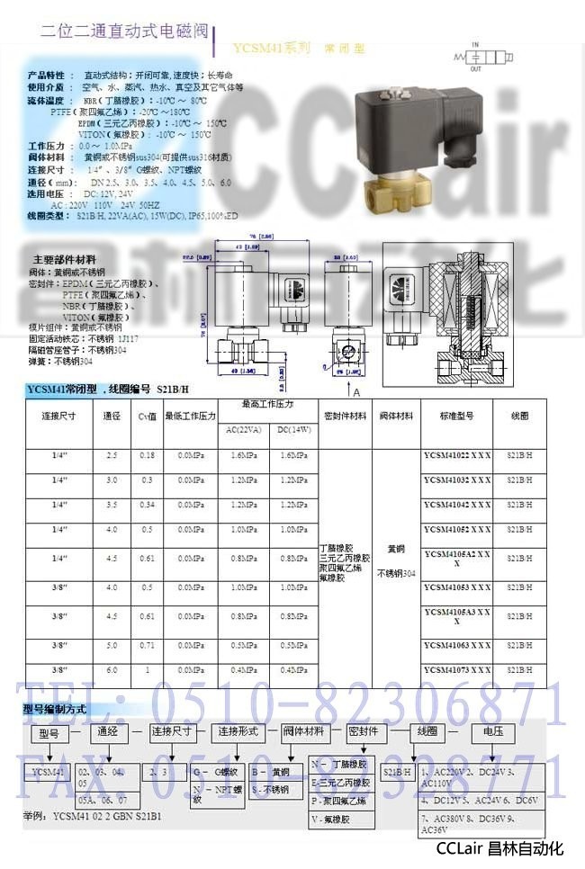 YCSM41022,YCSM41023,YCSM41032,YCSM41033,YCSM41042, 二位二通直動(dòng)式電磁閥 ,價(jià)格