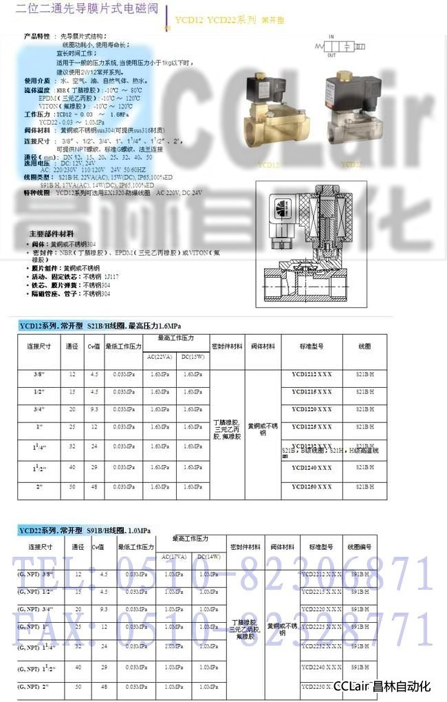 YCD2120,YCD2125,YCD2132,YCD2140,YCD2150,二位二通先導膜片式電磁閥