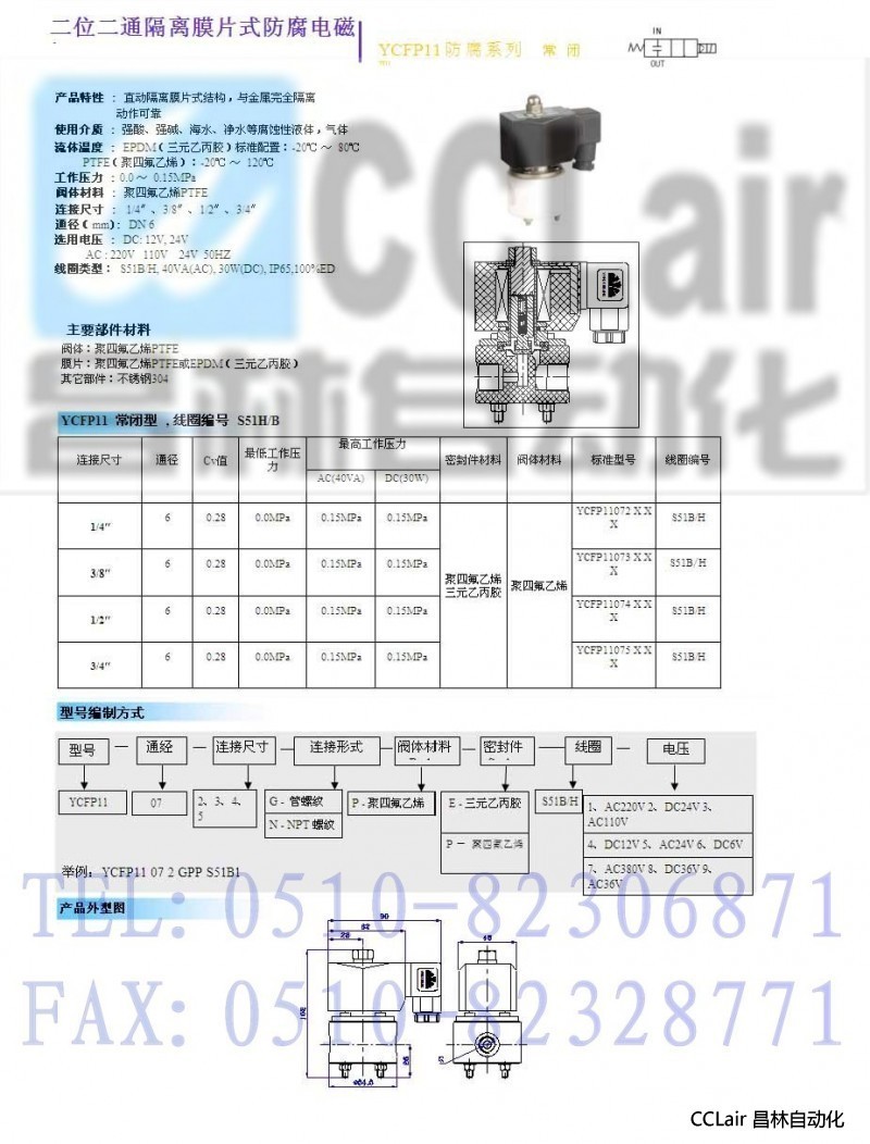 YCFP11072,YCFP11073,YCFP11075,YCFP11074,二位二通直動(dòng)隔離膜片式電磁閥