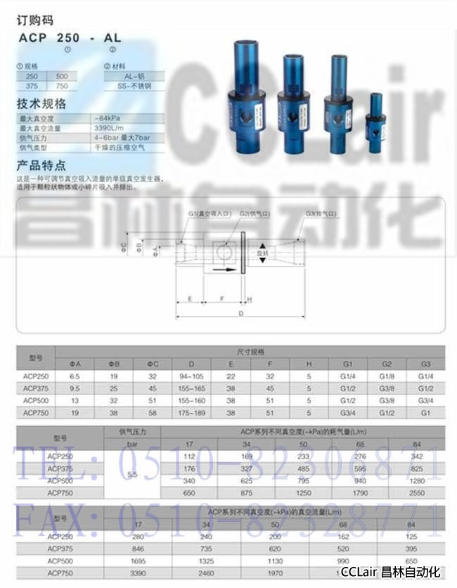 ACP250,ACP375,ACP500,ACP750,真空發(fā)生器,