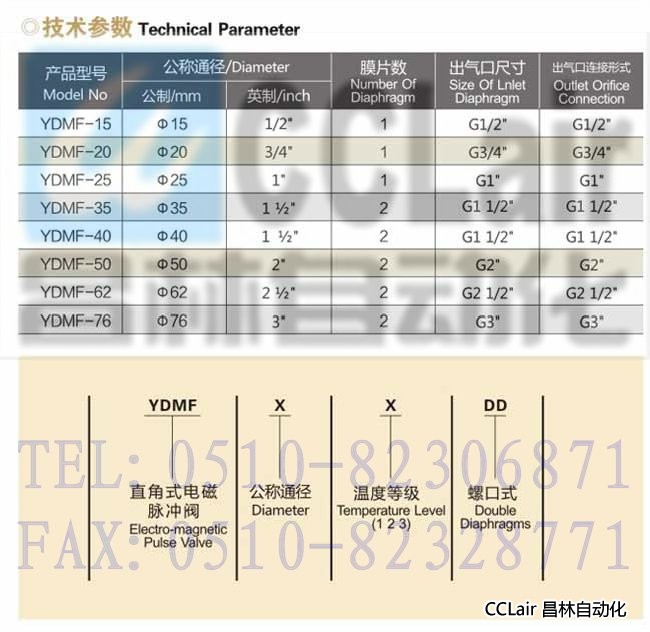 YDMF-40,YDMF-50,YDMF-62,YDMF-76,淹沒式電磁脈沖閥