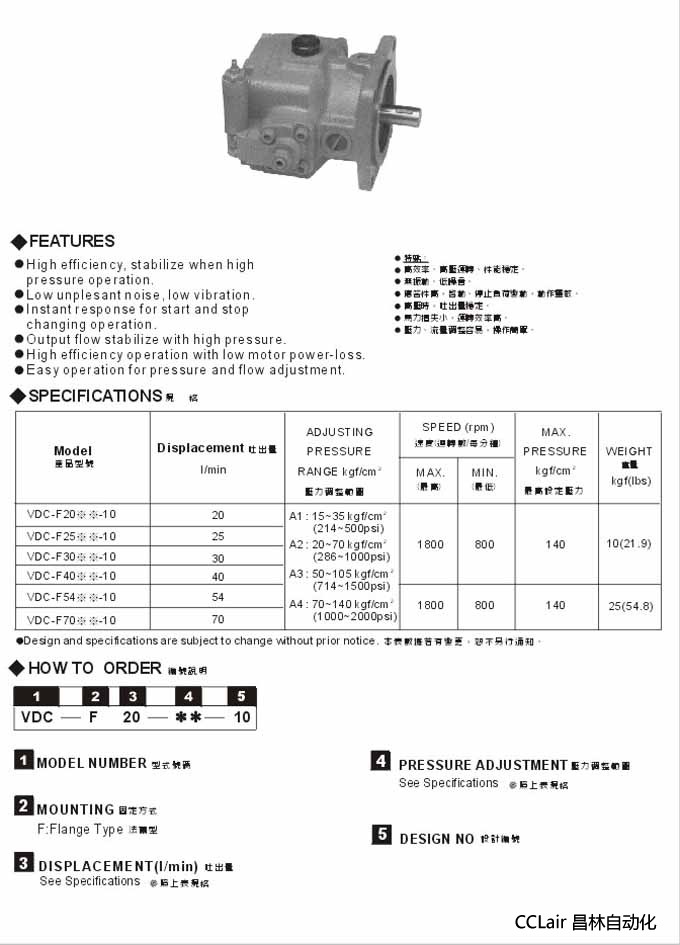 VDC-F70-A1-10,VDC-F70-A2-10,VDC-F70-A3-10,VDC-F70-A4-10,中壓變量葉片泵