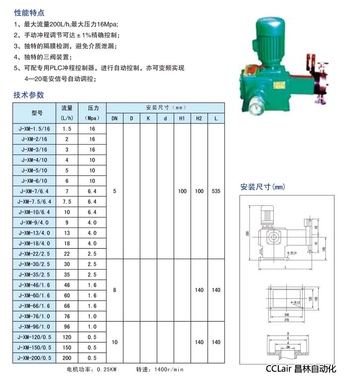 J-XM-7/6.4,J-XM-7.5/6.4,J-XM-10/6.4,液壓隔膜計量泵