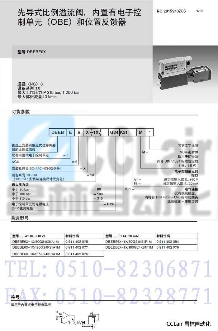 DBEBE6X-1X/315G24K31A1M, DBEBE6X-1X/80G24K31F先導(dǎo)式比例溢流閥,力士樂REXROTH,德國(guó)力士樂