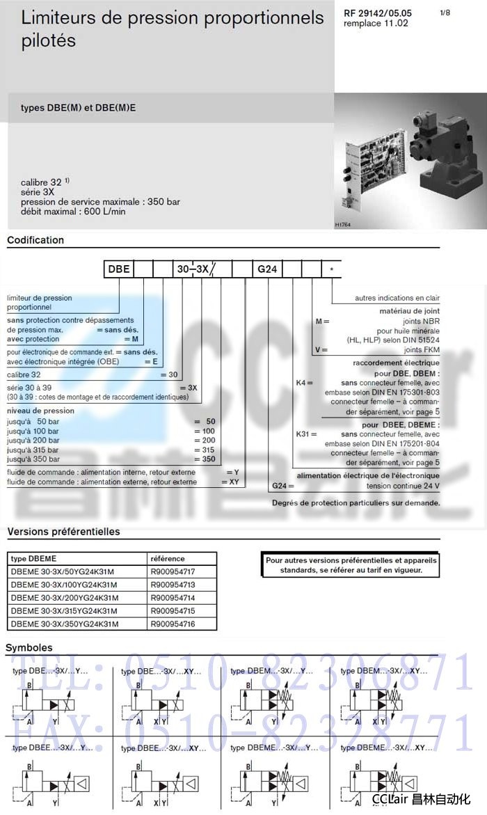 DBEE30-3X/100YG24K31M,DBEE30-3X/200YG24K31M,,先導式比例溢流閥,力士樂REXROTH,德國力士樂