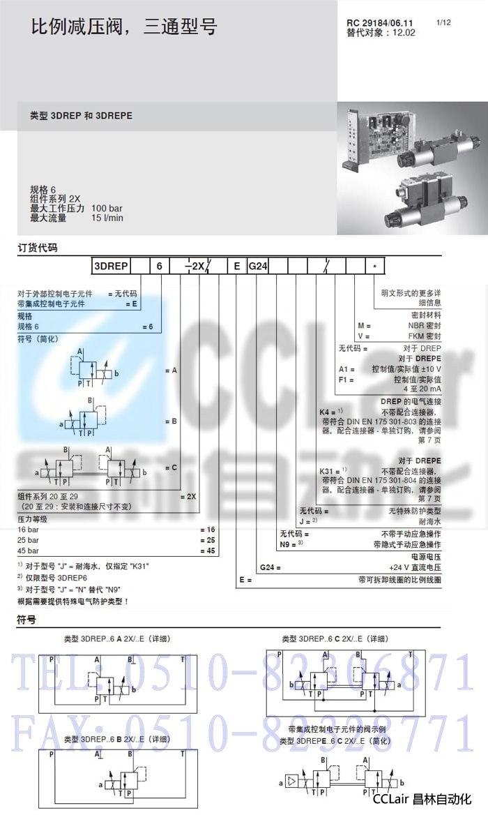 3DREP6C-2X/16EG24K4/M,3DREP6C-2X/25EG24K4/M,直動式比例減壓閥,力士樂REXROTH,德國力士樂 |