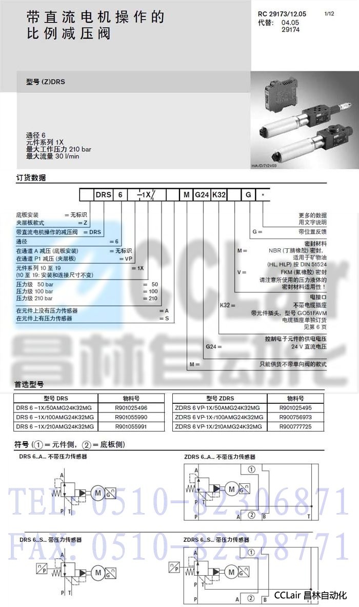 DRS6-1X/210AMG24K32MG,ZDRS6VP-1X/50AMG24K32MG,先導(dǎo)式比例減壓閥,力士樂REXROTH,德國力士樂