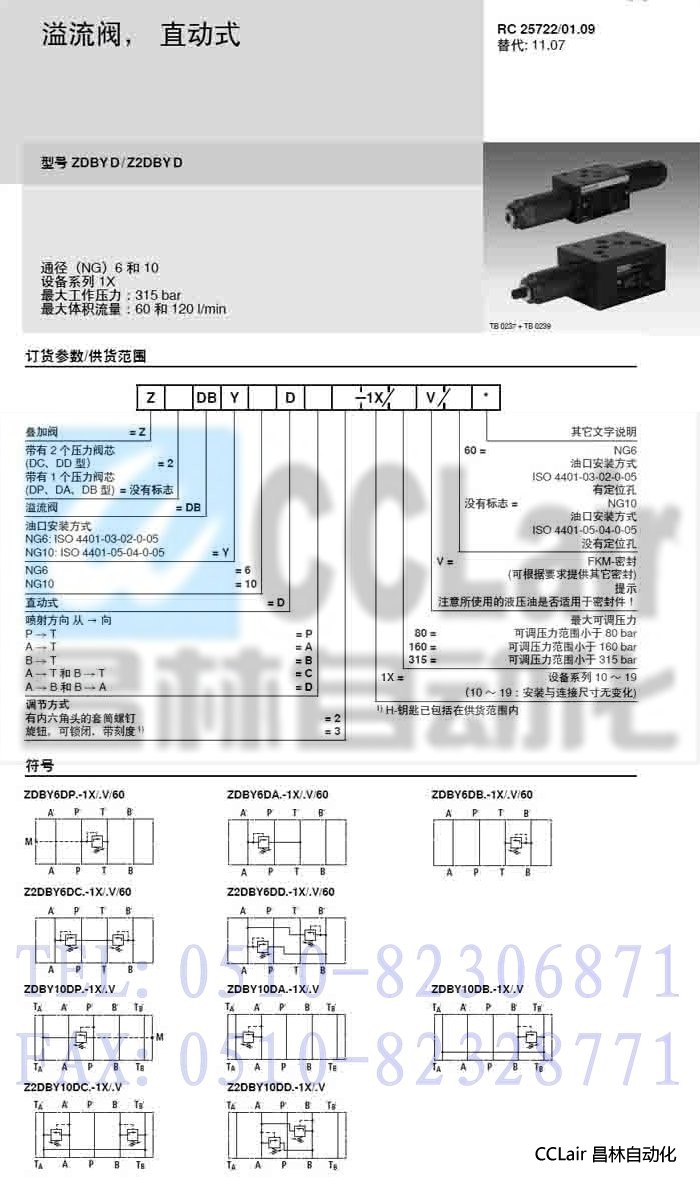 ZDBY6DB2-1X/315V/60,ZDBY6DA2-1X/315V/60,直動式溢流閥,力士樂REXROTH,德國力士樂
