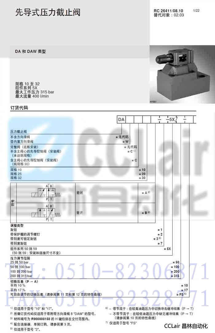 DAC1-5X/315-17Y,DAC2-5X/50-10Y,DAC2-5X/50-17Y 先導(dǎo)式壓力截止閥,力士樂REXROTH,德國力士樂