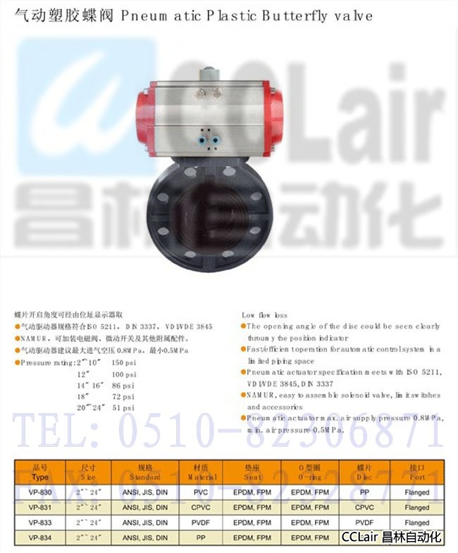 VP-830,VP-831,VP-833,VP-834,氣動(dòng)塑膠蝶閥