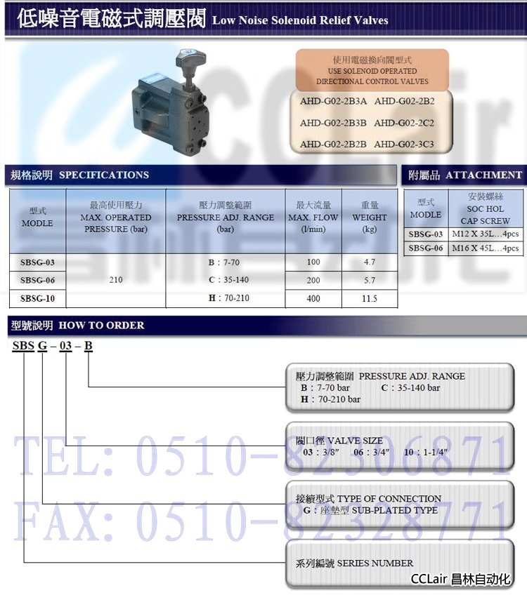 SBSG-03-B,SBSG-03-C,SBSG-03-H,SBSG-06-B,SBSG-06-C,臺(tái)灣油順,低噪音電磁式調(diào)壓閥