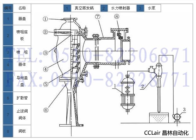 W型水力噴射器整個裝置結(jié)構緊湊精密,強度變較高,用于真空蒸發(fā)系統(tǒng)中,由于能把冷凝器的冷凝作用與真空泵的抽氣作用合并在一個設備中同時完成,大大地簡化了工藝流程, 比之原來用真空泵與舊式冷凝器的裝置,可以節(jié)省去真空泵、冷凝器,分水器等設備,并且還有下列優(yōu)點: