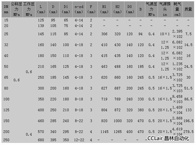 英標(biāo)氣動(dòng)常開型隔膜閥主要尺寸及重量: