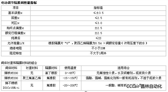 電動調(diào)節(jié)隔膜閥主要技術(shù)參數(shù)