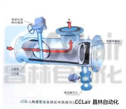 JCG型全自動(dòng)反沖洗排污過(guò)濾器由殼體、不銹鋼過(guò)濾網(wǎng)筒、雜質(zhì)收集段,電動(dòng)雜質(zhì)排污口、電動(dòng)水流轉(zhuǎn)向蝶閥、檢測(cè)機(jī)構(gòu)、執(zhí)行機(jī)構(gòu)和控制箱組成。按安裝型式及水流方向的不同分為直通式和角通式兩種。