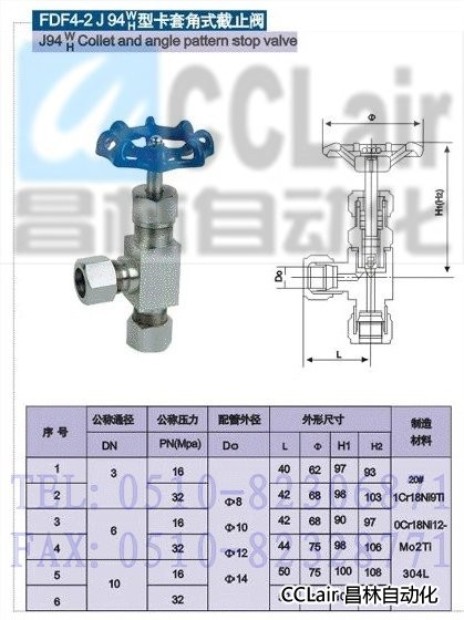 J94W-16,J94W-25,J94W-64,J94W-160,卡套角式針型閥