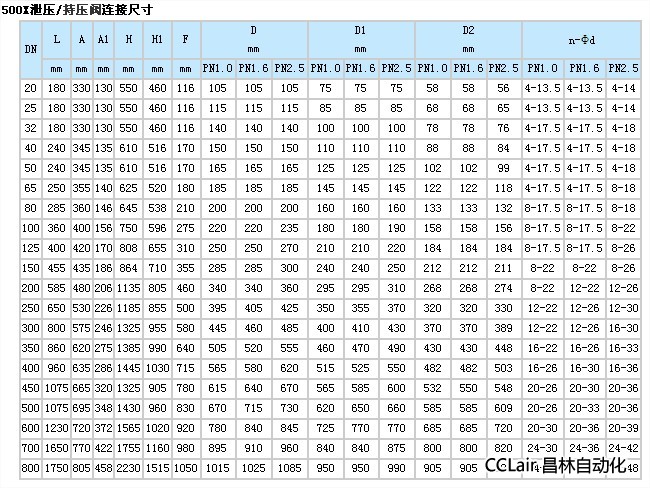 500X泄壓/持壓閥連接尺寸