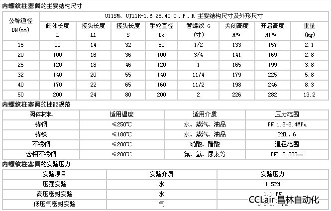 UJ11H-16,UJ11H-16C,UJ11H-16P,UJ11H-25,UJ11H-25C,UJ11H-25P,內(nèi)螺紋連接柱塞閥