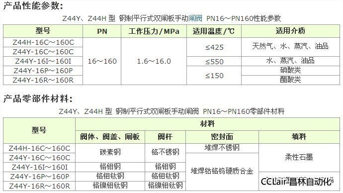 產品說明 Z44H、Z44Y 型 PN16~PN160 鋼制平行式雙閘板閘閥:手動、法蘭連接、明桿平行式剛性雙閘板,閥座密封面材料為堆焊不銹鋼(Z44H)、堆焊硬質合金(Z44Y),公稱壓力 PN16~PN160,閥體材料為碳素鋼(Z44H-16C~160C Z44Y-16C~160C)、鉻鉬鋼(Z44Y-16I~160I)、不銹鋼(Z44Y-16P~160P Z44Y-16R~160R)的閘閥。