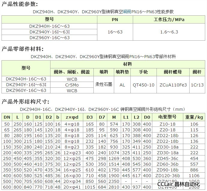產(chǎn)品說明 DKZ940H、DKZ940Y、DKZ960Y 型 PN16~PN63 真空閘閥驅(qū)動(dòng)方式為電動(dòng),連接方式為法蘭連接(DKZ960Y 為對(duì)接焊連接)、明桿楔式彈性閘板,閥座密封面材料為不銹鋼或硬質(zhì)合金,公稱壓力 PN16~PN63,閥體材料為碳鋼(DKZ940H-16C~63、DKZ960Y-16C~63)、Cr5Mo(DKZ940Y-16I~63I)的真空閘閥。