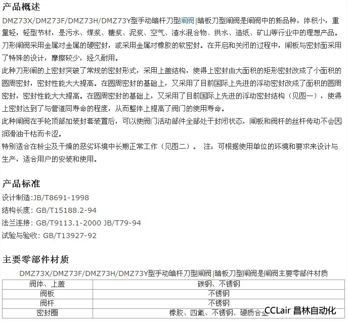 DMZ73X-10,DMZ73F-10,DMZ73H-10,DMZ73Y-10,手動暗桿刀型閘閥