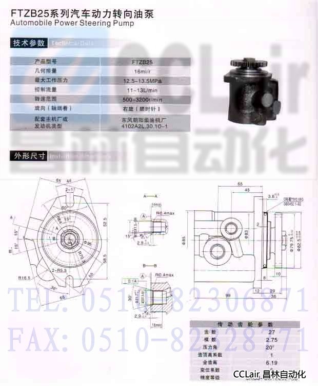 FTZB25,汽車動力轉(zhuǎn)向油泵