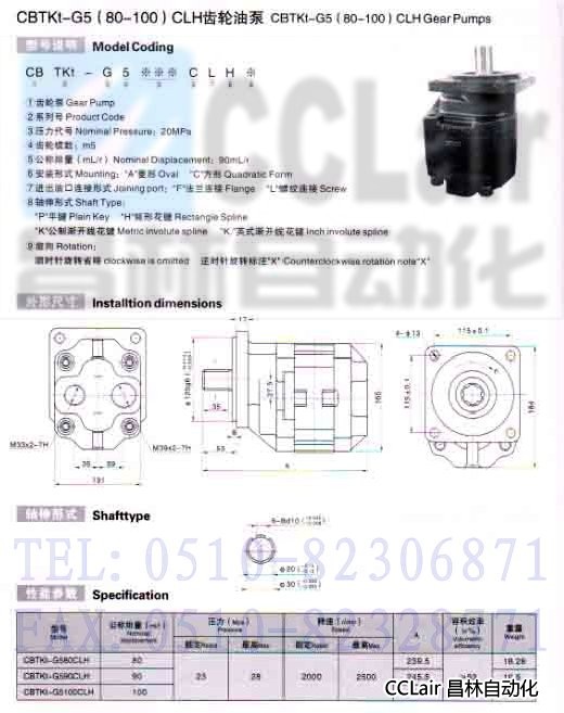 CBTKt-G580CLH,CBTKt-G590CLH,CBTKt-G5100CLH,齒輪油泵