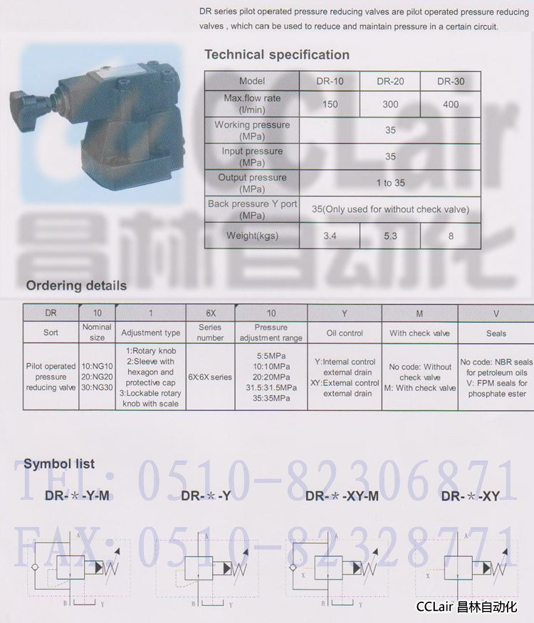 DR-10,DR-20,DR-30,先導(dǎo)式減壓閥