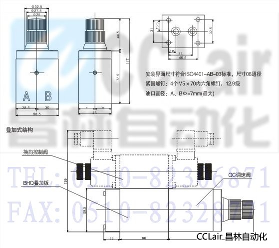 QC-06型流量閥可以與疊加板合成疊加式單向調(diào)速閥,方便在標準油路板中安裝,簡化液壓控制回路的設(shè)計。