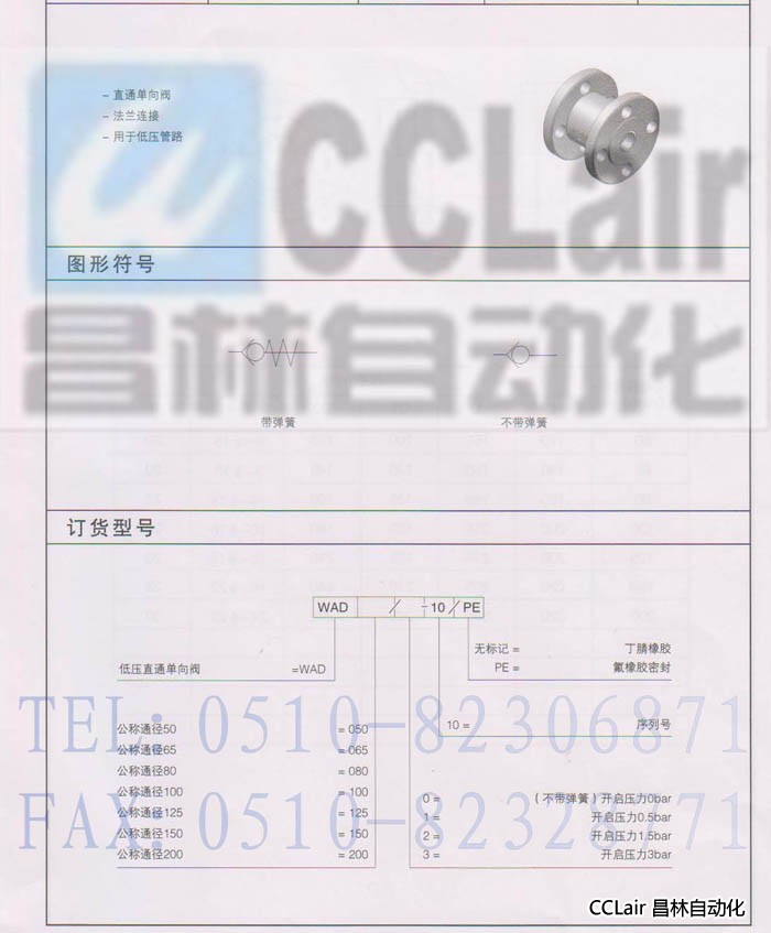 WAD050,WAD065,WAD080,WAD100,WAD125,WAD150,WAD200,法蘭式低壓直通單向閥