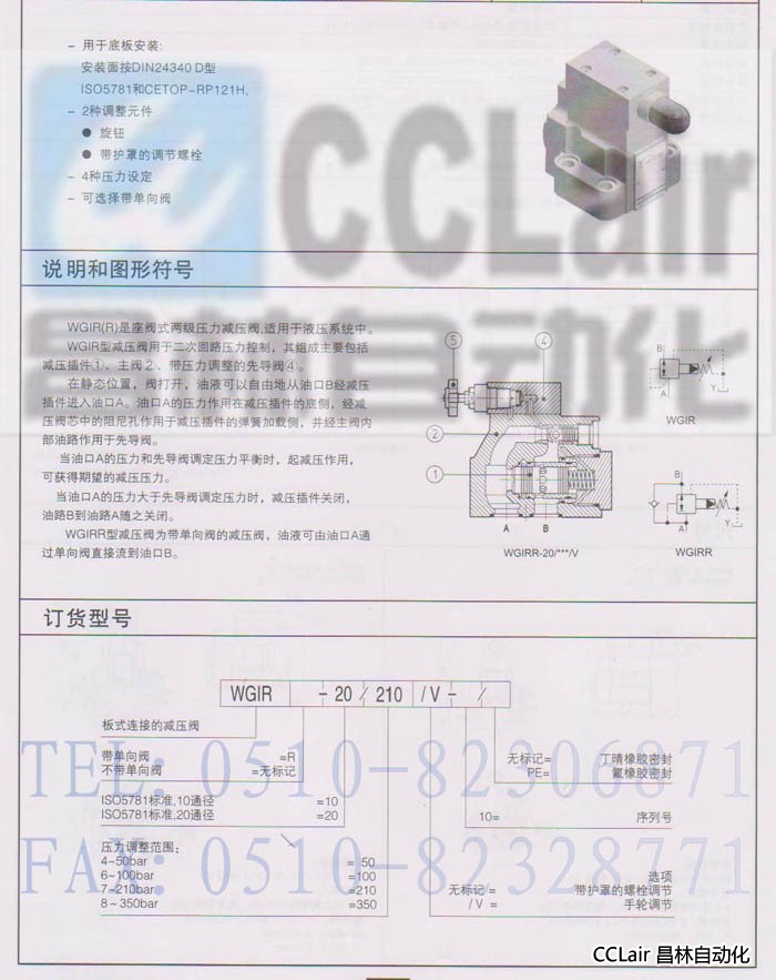 WGIR-10,WGIR-20,WGIRR-10,WGIRR-20,先導(dǎo)式減壓閥