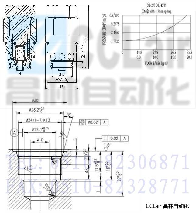 此閥使用時,允許液流以很低的壓力降從①口 到② 口,同時阻止液流從② 口到① 口.