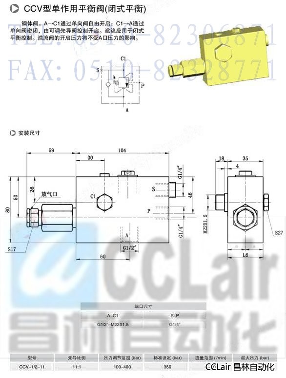 CCV-1/2-11,單作用平衡閥(閉式平衡)