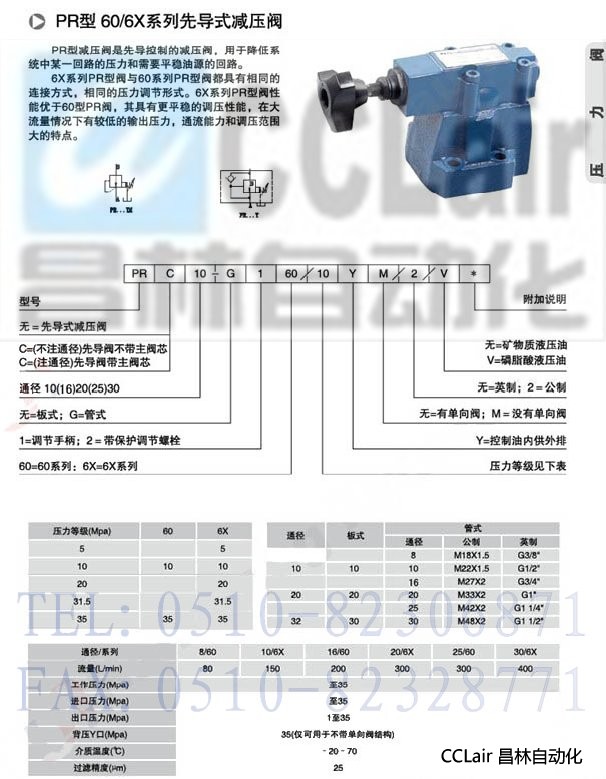 PR10,PR16,PR20,PR25,PR30,先導(dǎo)式減壓閥