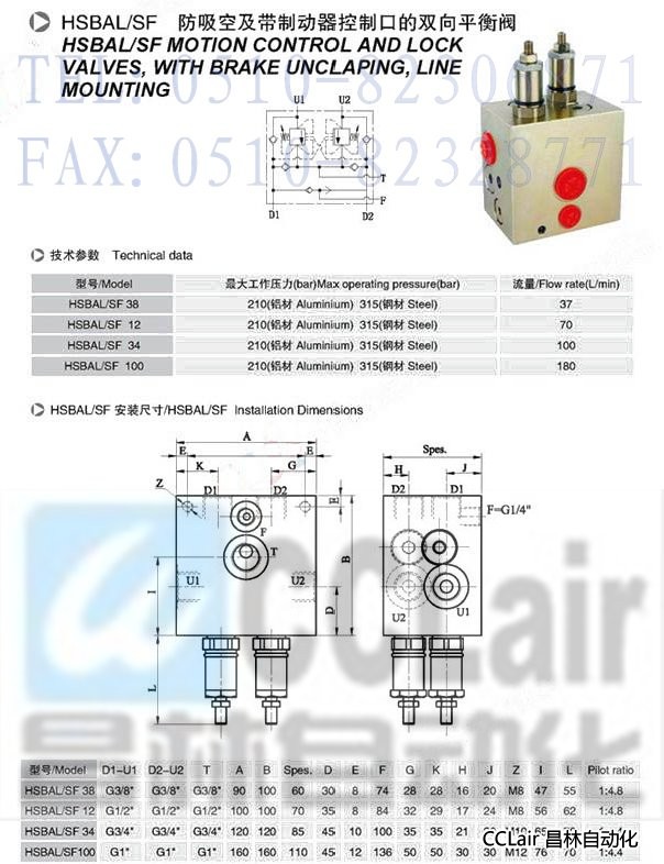 HSBAL/SF 38,HSBAL/SF 12,HSBAL/SF 34,HSBAL/SF 100,防吸空及帶制動(dòng)器控制口的雙向平衡閥