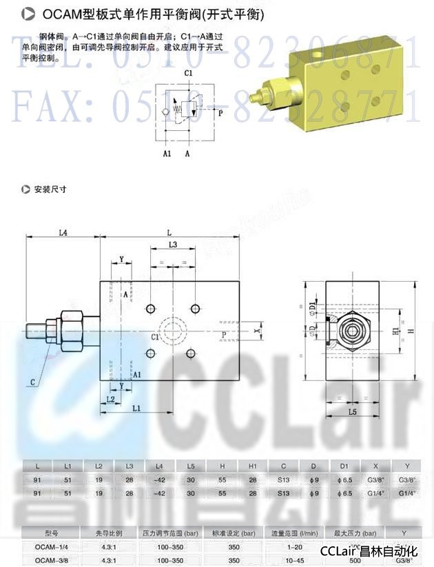 OCAM-1/4,OCAM-3/8,板式單作用平衡閥(開式平衡)