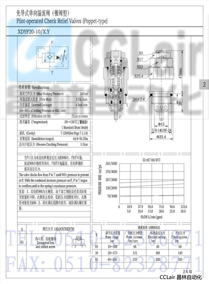 XDYF20-10,先導式單向溢流閥