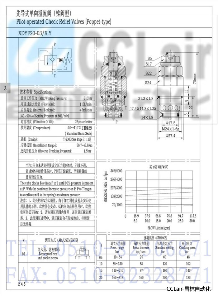 XDYF20-03,先導(dǎo)式單向溢流閥