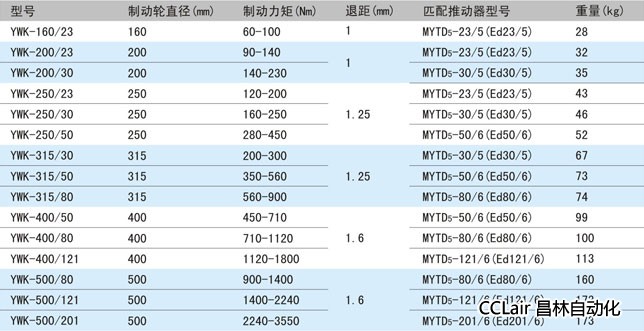 YWK-160/23,YWK-200/23,YWK-200/30,YWK-250/23,電力液壓塊式制動器