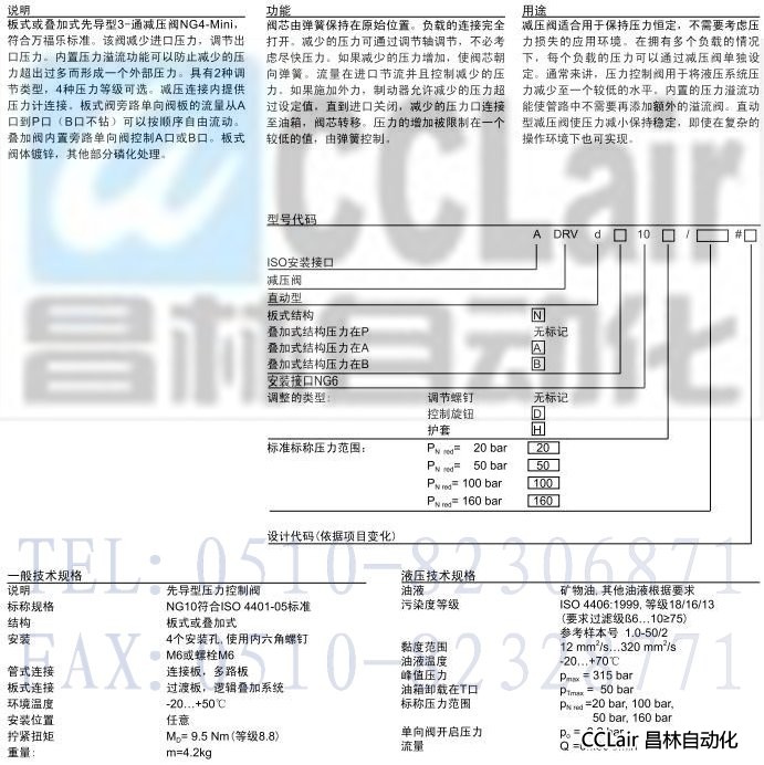 ADRVdN10,ADRVd10,ADRVdA10,ADRVdB10,先導式減壓閥板式和疊加式結(jié)構(gòu)