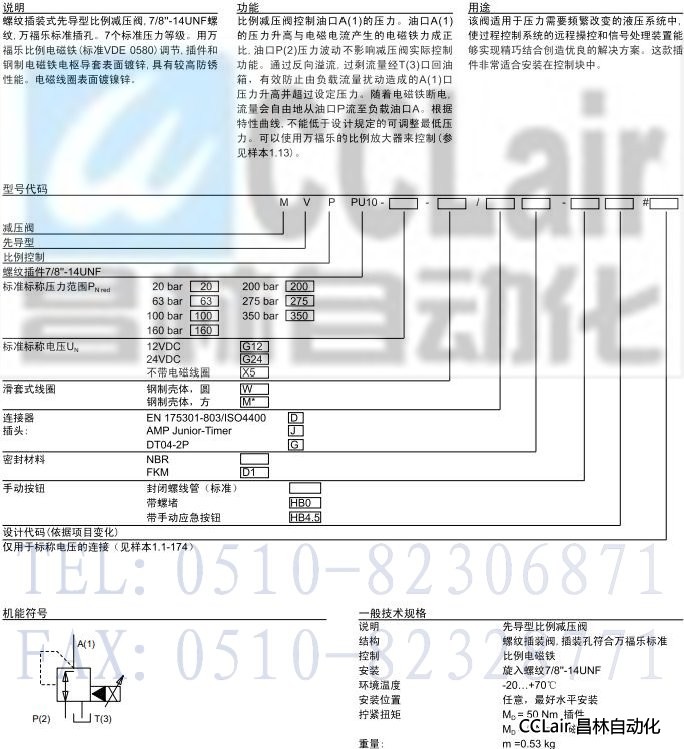 MVPPU10,先導(dǎo)式比例減壓插裝閥