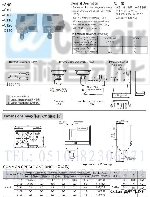 YSNS-C103,YSNS-C106,YSNS-C110,YSNS-C120,YSNS-C130,壓力開(kāi)關(guān)