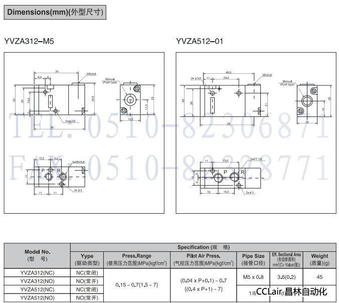 YVZA312(NC),YVZA312(NO),YVZA512(NC),YVZA512(NO),