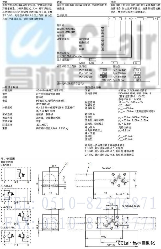 G.SA04-T,G.SA04-A,G.SA04-B,G.SA04-AB,先導(dǎo)式/直動式背壓閥疊加式結(jié)構(gòu)