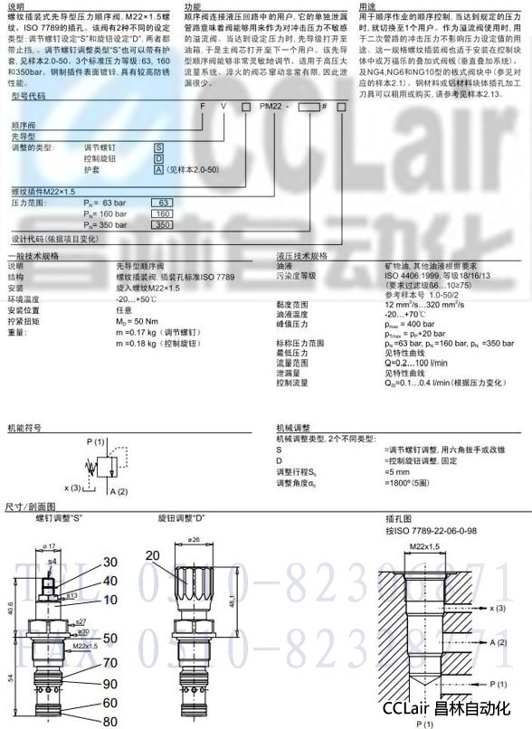 FVSPM22-63,F(xiàn)VDPM22-160,F(xiàn)V.PM22,先導式壓力順序插裝閥