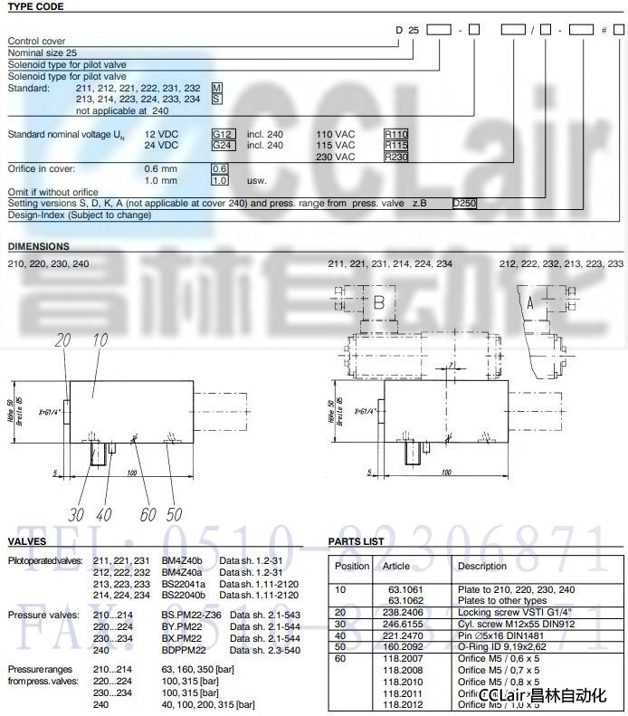 D25212M,D25214S,帶壓力功能的2位2通插裝閥