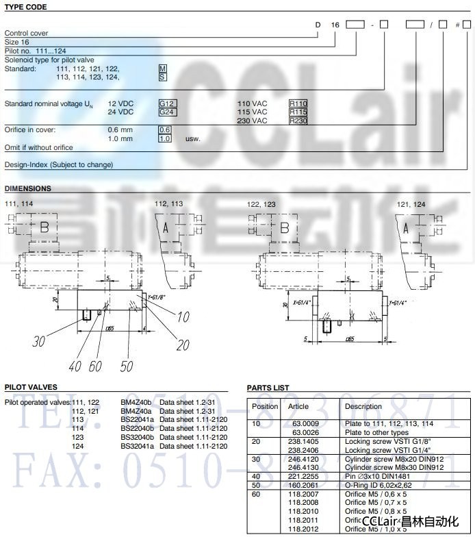 D16111M,D16113S,帶換向功能的2位2-通插裝閥