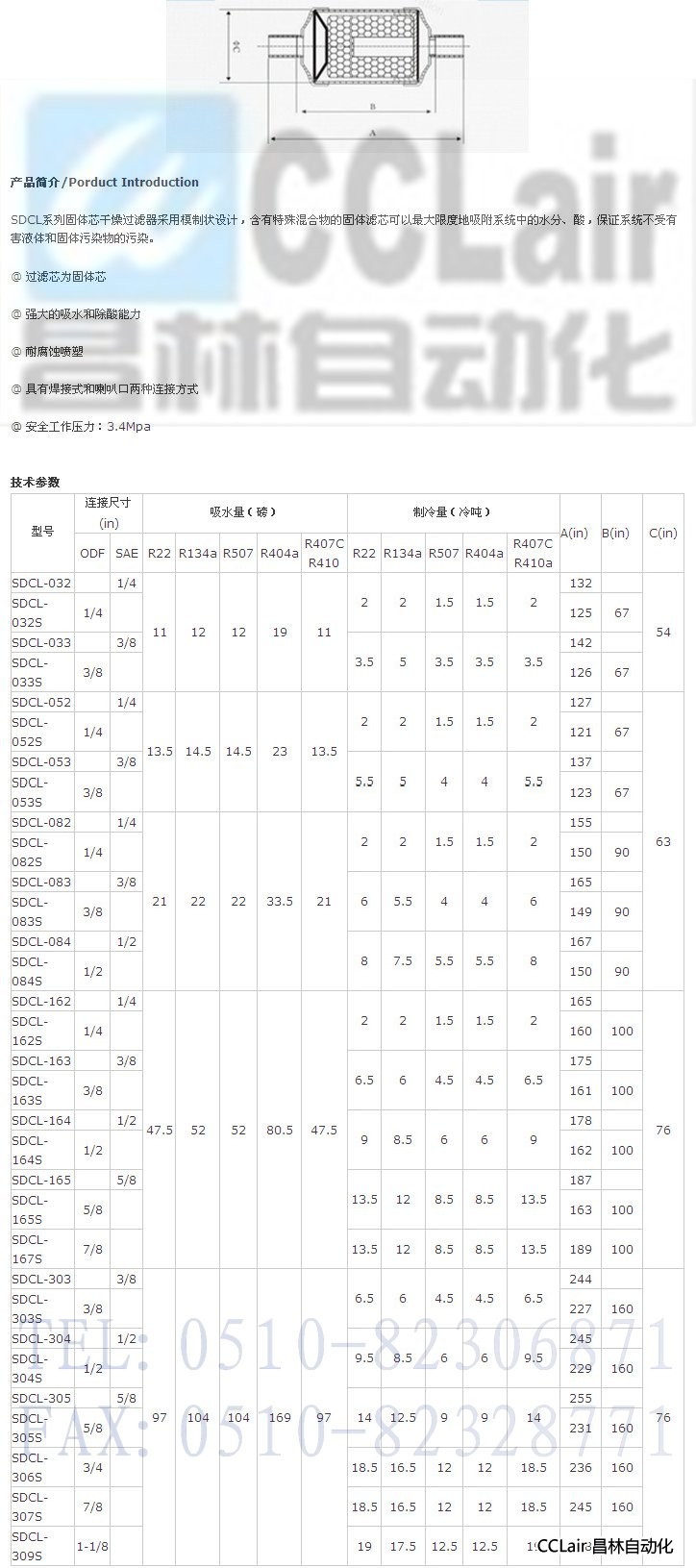 SDCL-032,SDCL-032S,SDCL-052,SDCL-052S,固體芯干燥過濾器