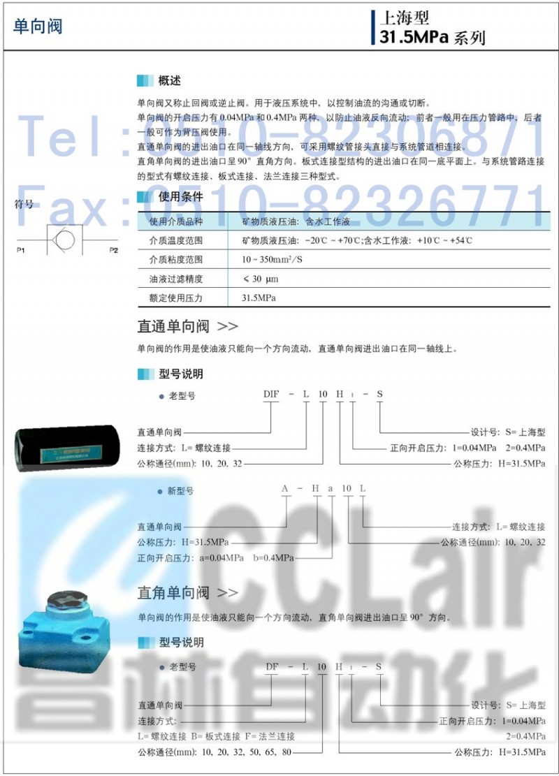 DF-B20H,DF-B20K,DF-B20C,DF-B32H,DF-B32K,DF-B32C,直通單向閥